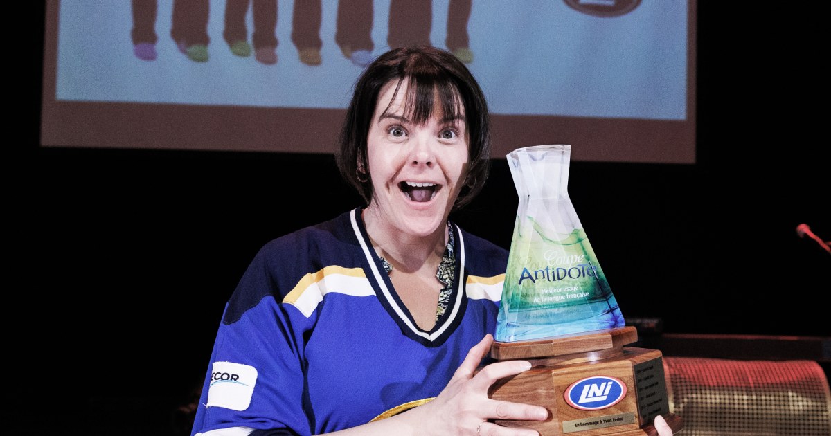 At the Coupe Charade finals, held Monday at Club Soda, Joëlle Paré-Beaulieu was presented the Antidote Cup for her performances over the 2023 season. Sponsored by Druide informatique, this award recognizes adept use of the French language during the spirited matches organized by the improvisational comedy theatre company Théâtre de la Ligue Nationale d’Improvisation (LNI).