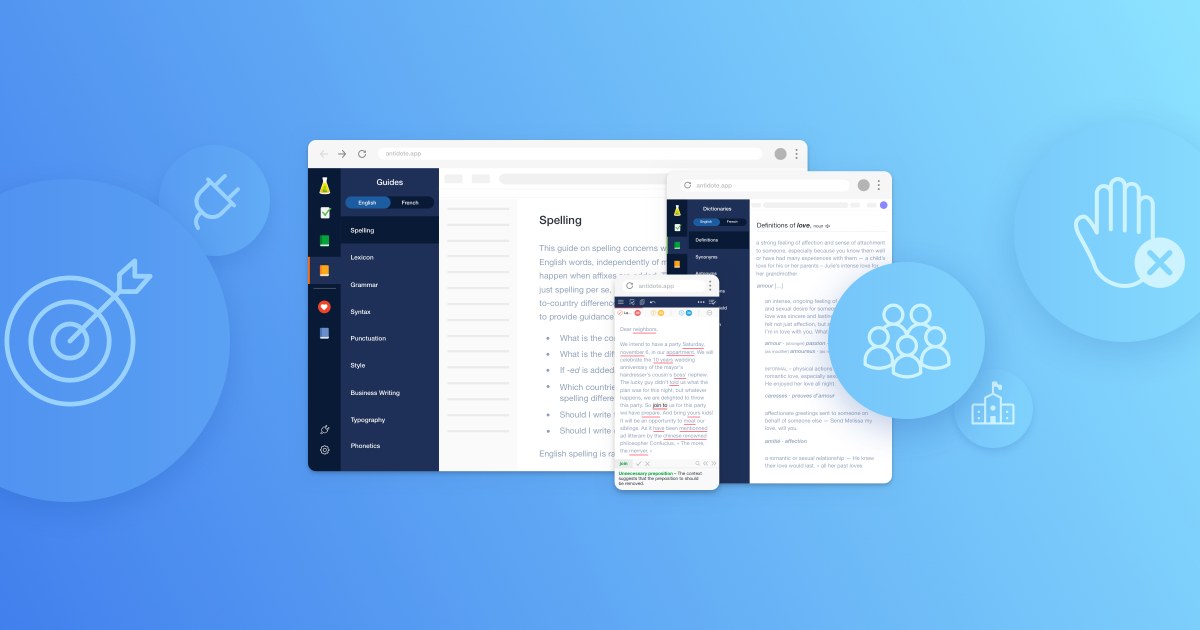 Druide informatique announces the immediate deployment of major new features for Antidote Web, the cloud edition of its famous language software. This update inherits substantial new language features from Antidote 11 v3, released today. And Antidote Web goes even further by deploying fine-tuned access controls for its resources and its content.