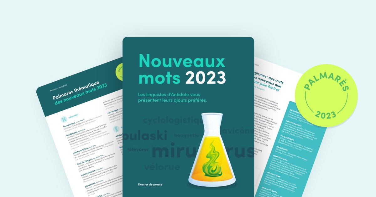 Druide informatique présente son dossier Nouveaux mots 2023, le palmarès des mots et locutions ajoutés aux dictionnaires d’Antidote lors de la dernière année. Ce nouveau rendez-vous annuel célèbre le caractère vivant de la langue française et témoigne des effets de l’actualité sur son évolution.